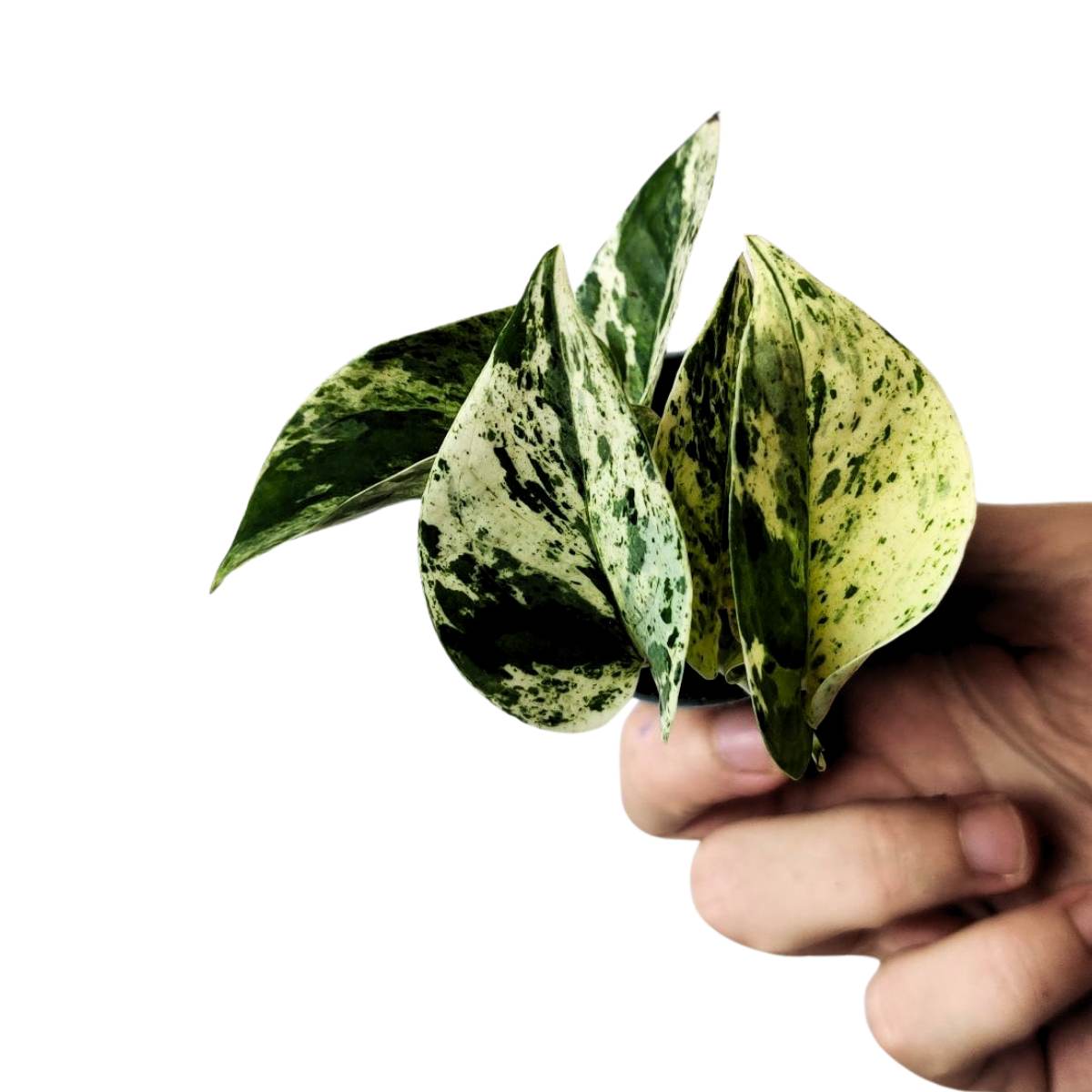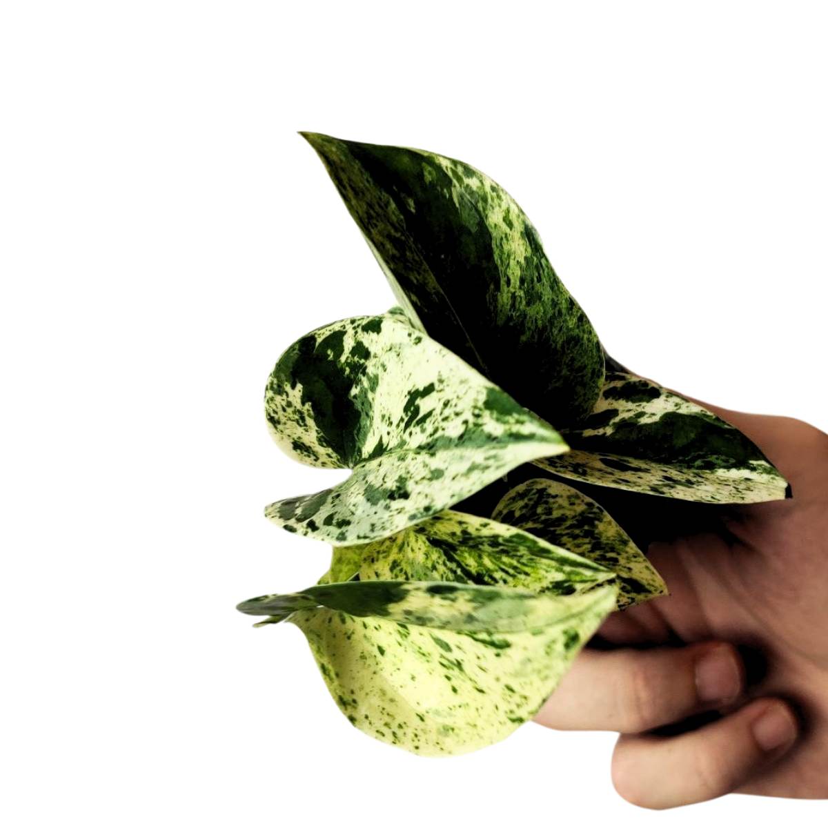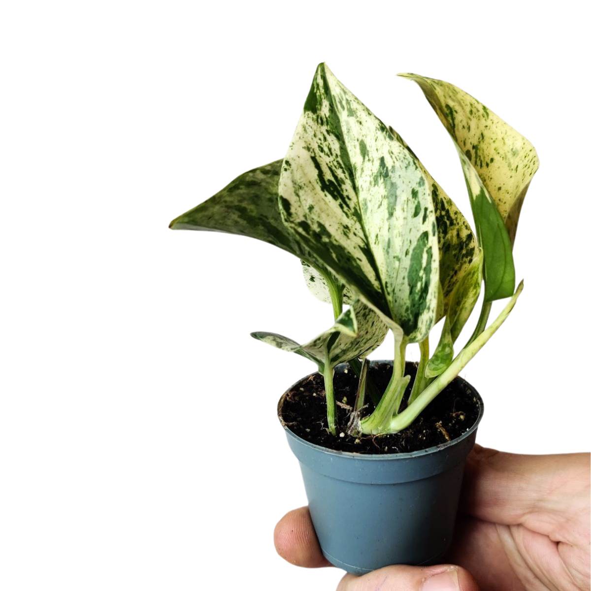 El Pothos Marble Queen, conocido en español como "poto Marble Queen", es una planta de interior popular y decorativa, famosa por su impresionante follaje en tonos de verde y blanco crema, que le da un aspecto marmoleado distintivo. Originaria de las regiones tropicales del Pacífico Sur, esta planta es apreciada por su capacidad para adaptarse a una variedad de condiciones interiores y su facilidad de cuidado. Su crecimiento rápido y su naturaleza de enredadera la hacen ideal para cestas colgantes o para colocar en estantes altos, donde sus hojas caen elegantemente en cascada. Además, el Pothos Marble Queen no solo embellece los espacios, sino que también contribuye a mejorar la calidad del aire en el hogar.
