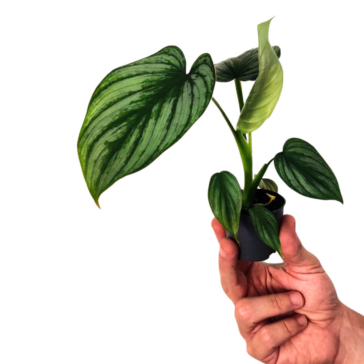 El Philodendron mamei es una planta tropical muy apreciada por sus grandes hojas en forma de corazón, que presentan un patrón distintivo de vetas plateadas que contrastan con su color verde oscuro. Originaria de las selvas tropicales de América del Sur, esta planta es conocida por su capacidad de adaptarse a condiciones de interior, siendo relativamente fácil de cuidar. El Philodendron mamei prefiere luz indirecta brillante y un ambiente húmedo, aunque también puede tolerar niveles de luz más bajos. Su hábito de crecimiento es rastrero, lo que la convierte en una excelente opción para cestas colgantes o para trepar en soportes. Además de su belleza, esta planta también ayuda a purificar el aire, añadiendo tanto estética como funcionalidad a cualquier espacio interior.