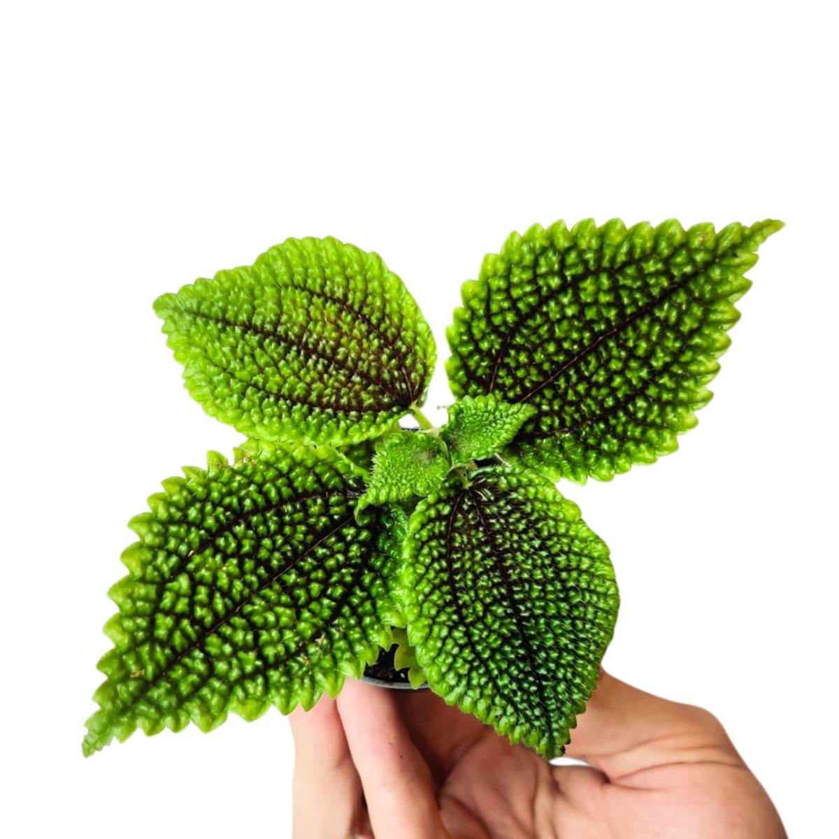 EL Pilea mollis 'Moon Valley' es una planta originaria de las regiones tropicales de América Central y del Sur, conocida por su aspecto distintivo y atractivo. Esta variedad de Pilea se destaca por sus hojas redondeadas y arrugadas, que presentan un color verde intenso con venas prominentes en tonos más claros, creando un efecto texturizado que recuerda a la superficie lunar, de ahí su nombre. Es una planta de interior popular debido a su fácil cuidado y a su capacidad para adaptarse a diversas condiciones de luz. Prefiere luz indirecta brillante, temperaturas cálidas y un ambiente con humedad moderada, lo que la hace ideal para embellecer espacios interiores con un toque exótico y decorativo..